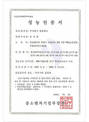 가. [중소기업제품 구매촉진 및 판로지원에 관한 법률] 제15조에 따라 성능인증을 받은 제품